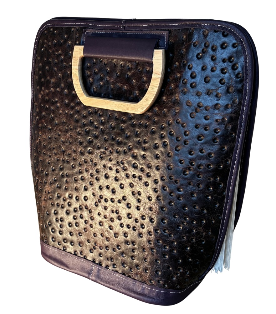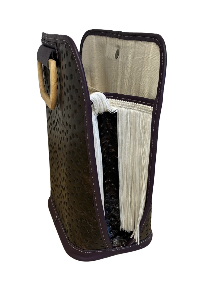 With the creative or professional in mind, this bag is designed to accommodate the organization of such things as laptops, files, books, notepads, writing/art supplies and even a bottle of wine … all toted in unique and absolutely elegant style!